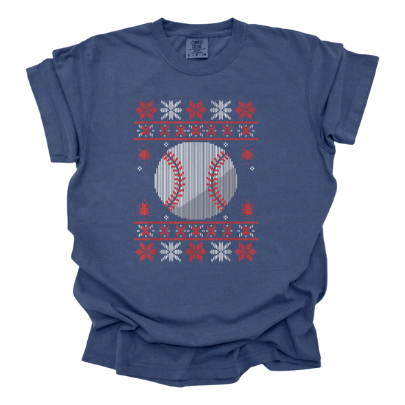 Baseball Christmas Sweater Print - Comfort Colors T-shirt
